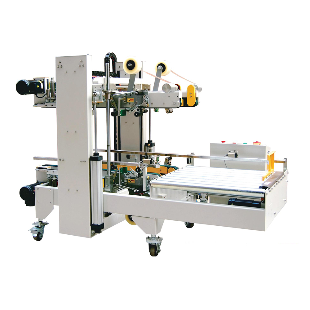 ● The carton is pushed by the pushing board into the sealing structure. After the machine detects the carton based on photoelectric detection, the machine automatically adjusts its width and height according to the carton specifications, and seals and smoothes the four cormers and edges of the carton at the same time.